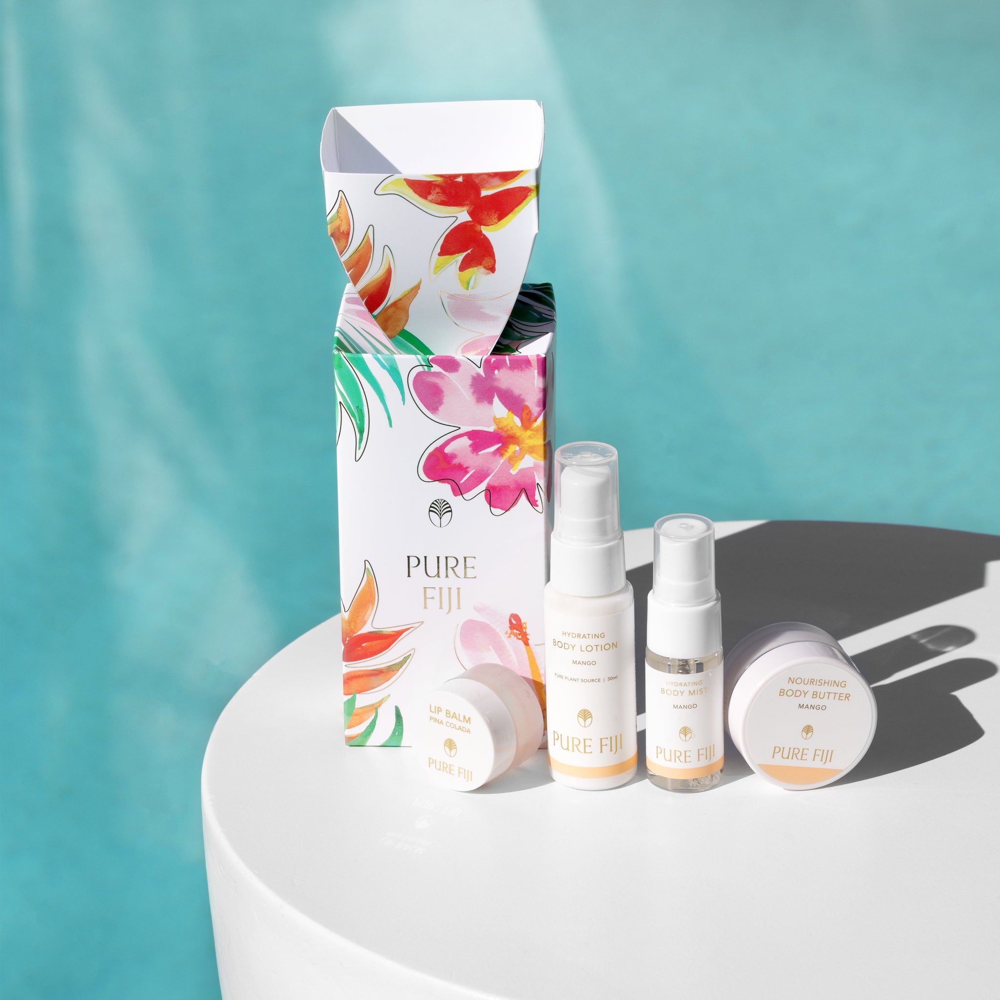 Unwrap natural beauty and wellbeing with our Christmas cracker, revealing Hydrating Body Lotion, Hydrating Body Mist, Nourishing Body Butter, and Lip Balm.
